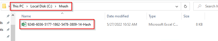 - Lastly, the hardware hash is captured and stored in C:\hhash with the name
