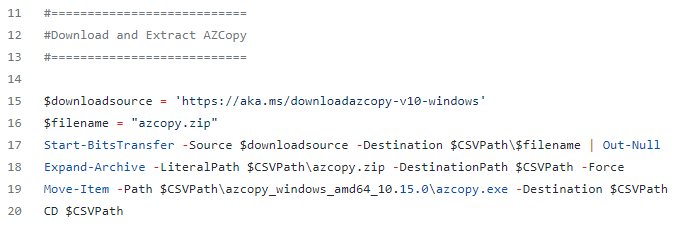 Now that we have our SAS URL recorded. Lets examine the script and what it does. It can be broken into three sections that perform different tasks:
