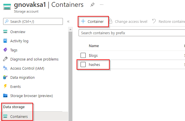 - Create a container and give it a name