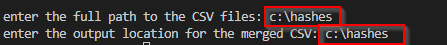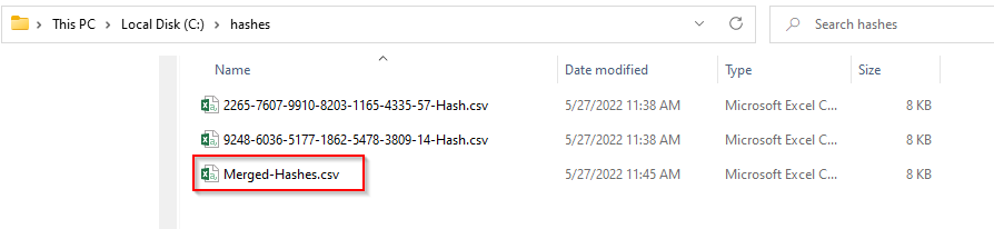 - Merged CSV will be placed in the output location with the name Merged-Hashes.csv