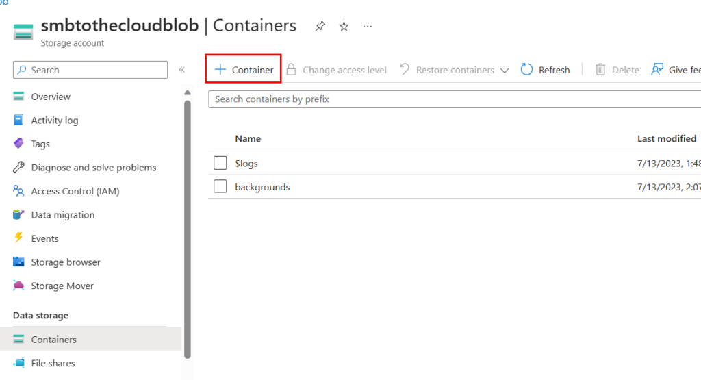 $BlobURL = "https://smbtothecloudblob.blob.core.windows.net/"