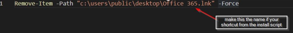 This is a simple script that deletes the shortcut from the public user desktop. In the event you no longer want this shortcut, you need to specify an uninstall script within the Win32 App to remove it. Simply change the shortcut name to what you used.