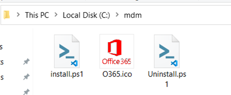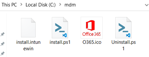 Now that you’ve edited both scripts with your values, we are ready to package this into a Win32 app. First, we need to place the install and uninstall scripts, and the icon file in the same directory.