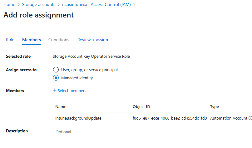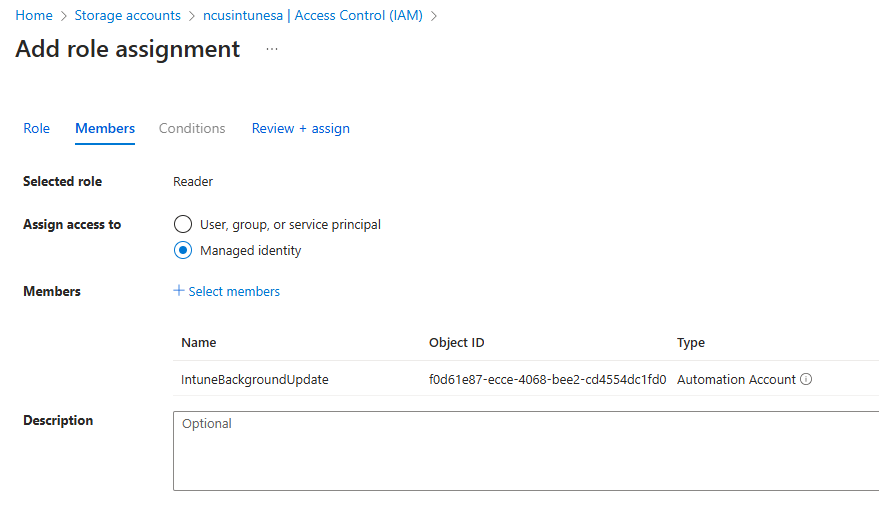 - Add automation account to have reader role permissions to storage account
