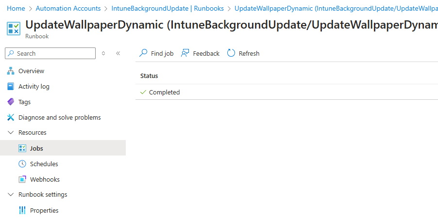 As the jobs run, you can track if they were successful under the Jobs tab for the automation runbook: