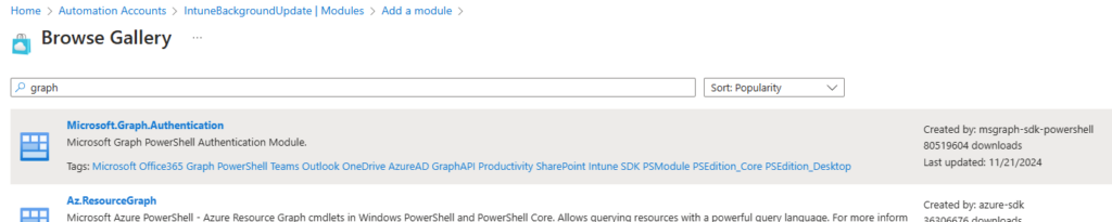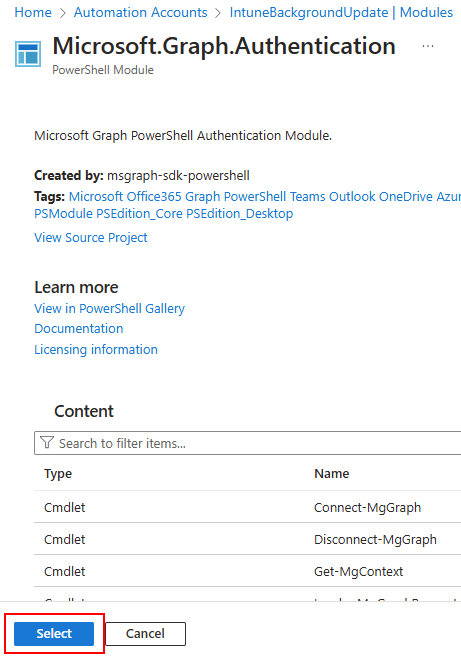 Search for and select Microsoft.Graph.Authentication: