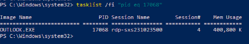If we look up that process ID, it leads us to the remote desktop session number, which maps back to the same user identified in the event logs who insisted they did not change the time zone: