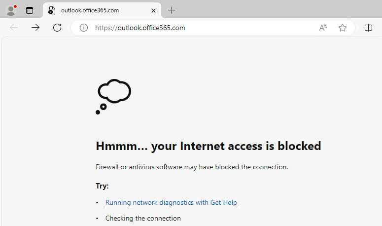 Lastly, if users try browsing to the internet, they’ll receive a message like this: