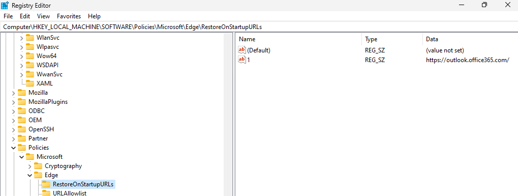 HKLM\Software\Policies\Microsoft\Edge\RestoreOnStartupURLs: