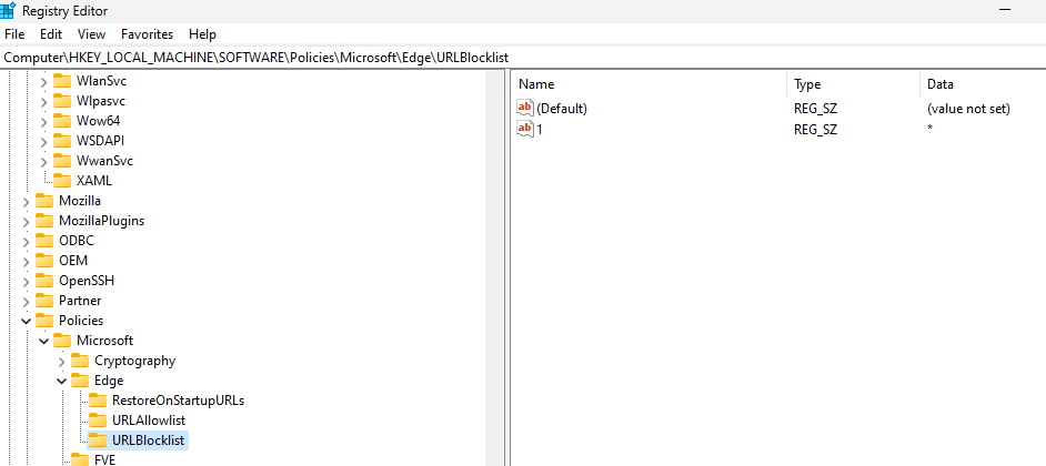 HKLM\Software\Policies\Microsoft\Edge\URLBlocklist: