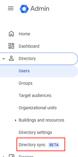 - From the Google Workspace Admin center, navigate to Directory > Directory Sync: