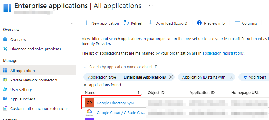 - Back in Entra, you’ll notice a new enterprise app has been created named “Google Directory Sync”