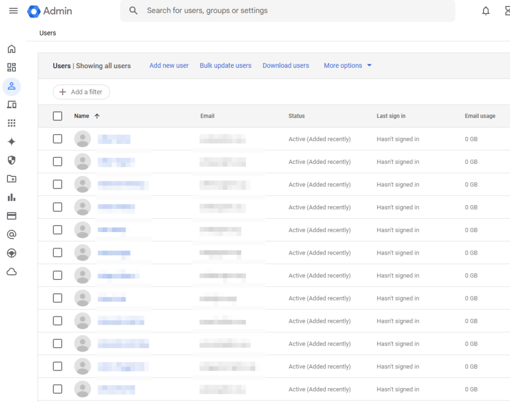 - After your sync finishes, all your targeted users should be added to Google Workspace: