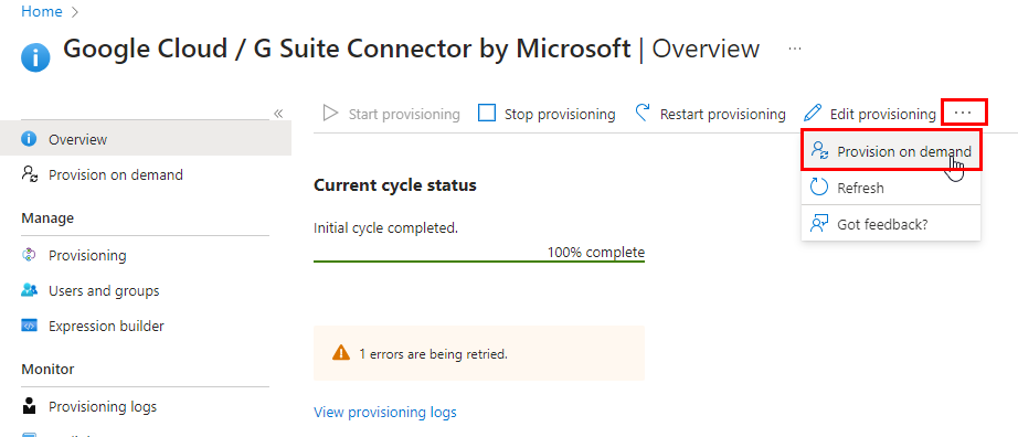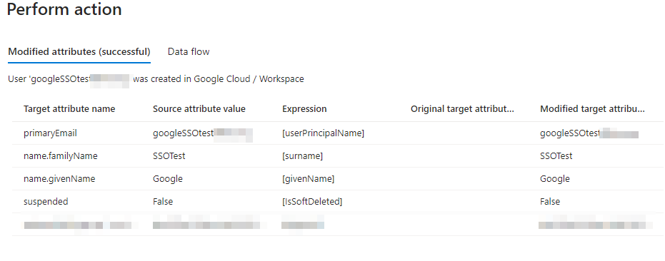 This will initiate the first provisioning cycle. Your test user should be created in Google Workspace shortly. If you did not add your user’s first and last name, it will fail to provision. You can also run a provision on demand to verify. If many of your users don’t have First or Last name attributes set, you can edit the mapping attribute for for surname and givenname to be an underscore or other character: