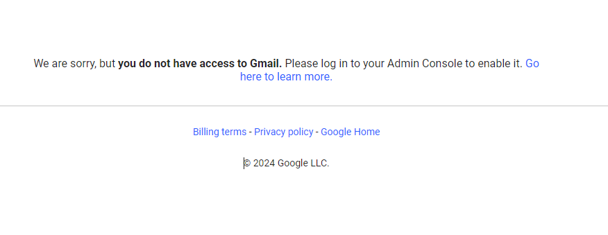 The Documentation states that you should use “https://www.google.com/a/yourdomain.com/ServiceLogin?continue=https://mail.google.com” as the sign on URL. If, for some reason, you’re using Gmail as your email provider but using Entra for authentication, you can use this. However, if you have Gmail disabled in Google Workspace (you should if you’re using M365), then users will see this screen after trying to sign in with SSO to Google Workspace: