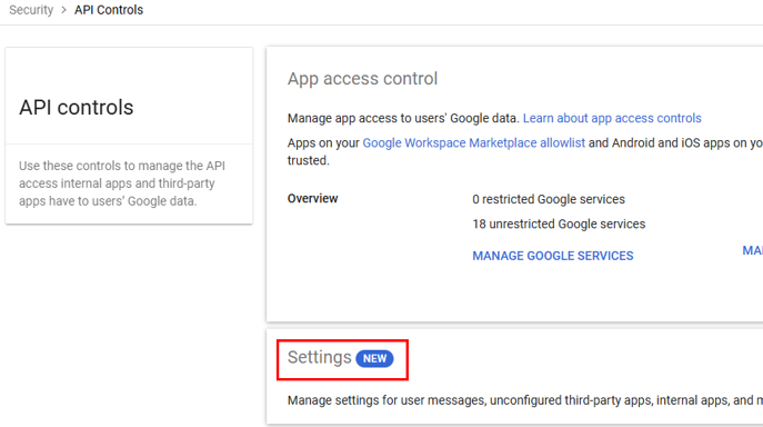 We will show this using the test user we created earlier (googlessotest) in Entra. To enable automatic user provisioning, from Google Workspace Admin center, navigate to Security > Access and data control > API control: