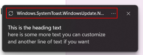 $AppId = 'Windows.SystemToast.WindowsUpdate.Notification'