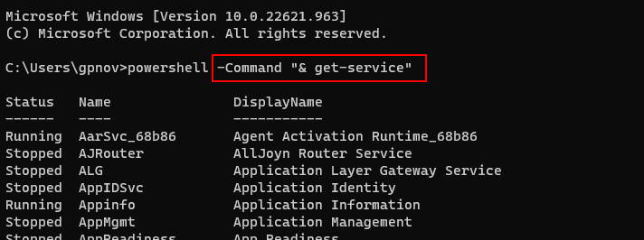 We can see that our test cmdlet was successful. The above picture really ends up from the Windows command line like this in the background:
