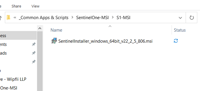 - Download the SentinelOne MSI installer. You can use the EXE installer, but the MSI is preferred and easily obtained through the S1 dashboard.