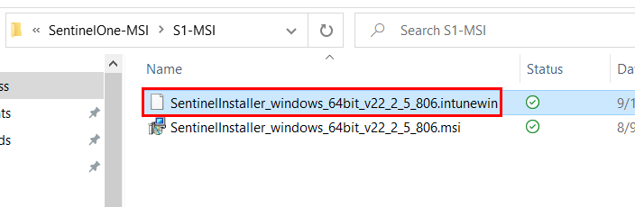 - When the utility completes packaging the installer, you should have an intunewin file located in the destination directory: