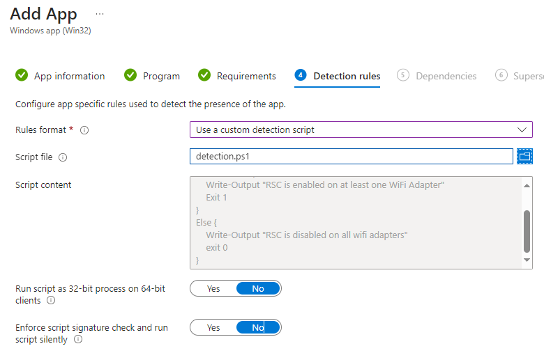 The detection script from the GitHub link above will look for any connected WiFi adapter and the RSC configuration: