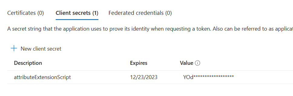 Next, create your client secret with your desired expiration date. Make sure to record your secret somewhere safe.
