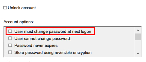 And after changing the password, you’ll notice the box is cleared in AD for that user to change password at next logon.
