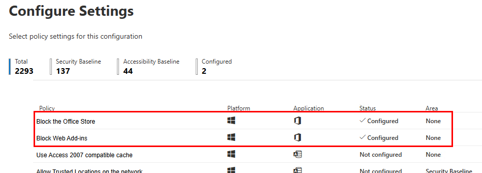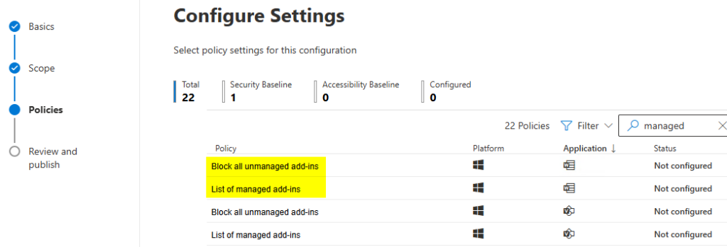 - Since these add-ins have been around since the 1990s, management settings are built into administrative templates, which have been ported over as settings catalog policies in Intune.