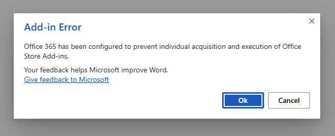And if your users can’t consent to permissions, they’ll be stopped from using the web add-in without admin approval