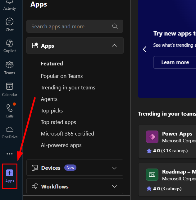 Technically, the correct term is “Teams Apps,” even though I sometimes hear them referred to as Teams add-ins. These are specific to Microsoft teams and separate from com and web add-ins. Teams is special and gets its own App Store with its own unique apps.