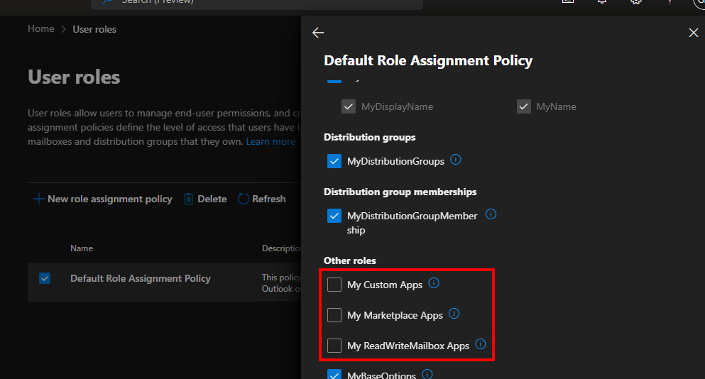 What we just covered works great for Word, Excel, and PowerPoint but not for Outlook. The Outlook Store button is controlled by… well, it doesn’t seem to matter because after days of testing, I could not disable or limit the “More Apps” button. Nor could I prevent users from installing whichever apps they wanted in the Outlook App Store. Blocking access to the store in the org settings had no impact on Outlook (New, Classic, and OWA) accessing the App Store:
