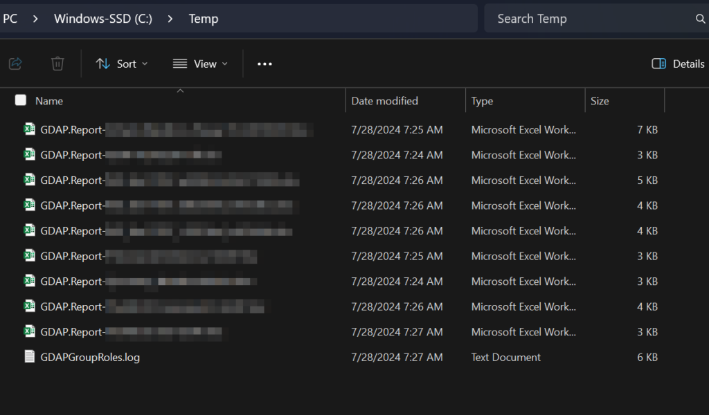 - The spreadsheet is exported to c:\temp with the name pre-fix “GDAP.Report-” followed by the admin relationship name.