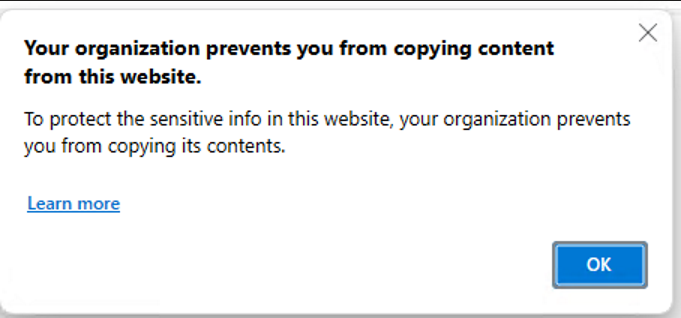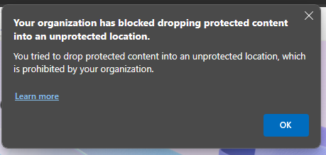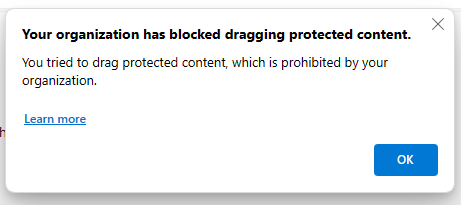 Let’s test some of the app protection policies. If we try to drag content into or out of the browser: