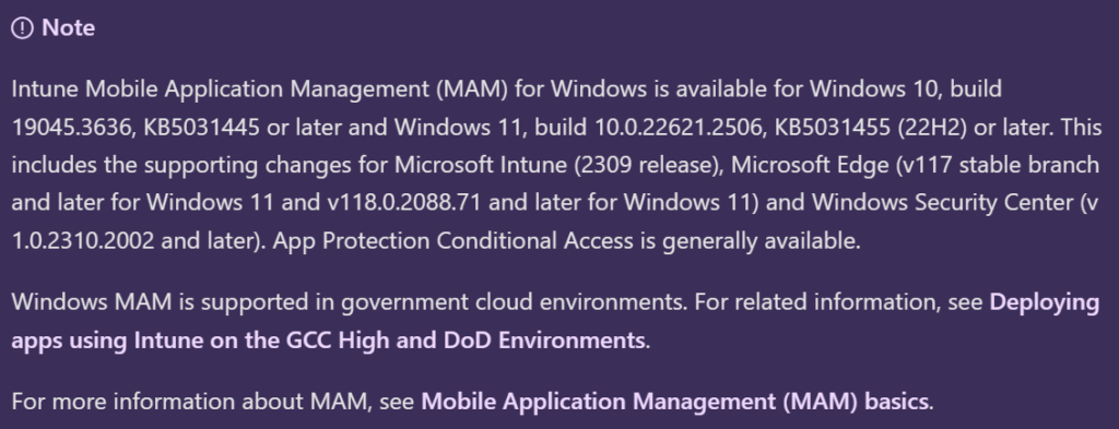 Windows MAM is a great option for any employees who are not issued a corporate device and still need access to company web apps and resources. This allows you to restrict how the company data is accessed and what can be done with it. It also allows you a bit of granular control over the access requirements and what users can and cannot do while accessing data. For example, you can block copy/paste and downloading of any data to the local PC. You can also set minimum OS or Edge versions. Full details can be found here – Data protection for Windows MAM | Microsoft Learn along with the requirements. You simply need an Intune and Entra ID P1 license, but your endpoints also must meet version requirements: