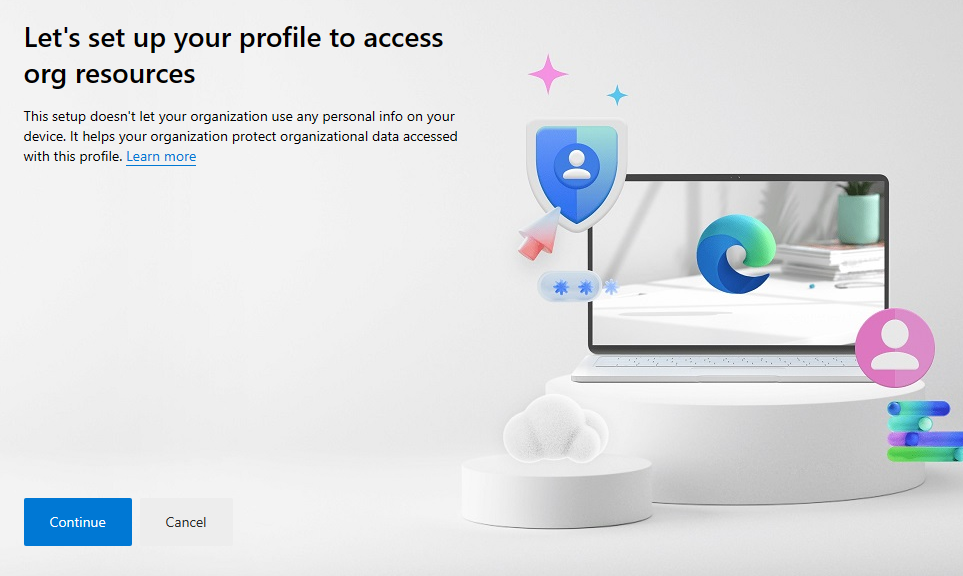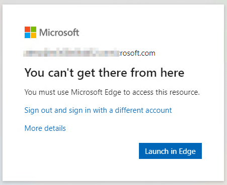 If we try signing in from Chrome or Firefox on an unmanaged device we receive the below notification message. Clicking launch in Edge will open Edge and allow you to authenticate, which will create a new work profile: