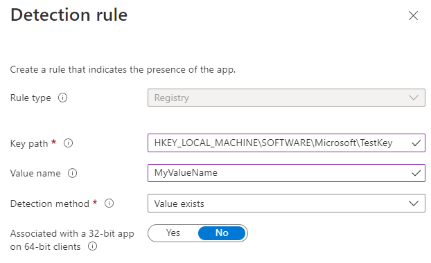 This post will review how to make registry changes on target machines by utilizing Win32 apps. Several months ago I had to make some reg changes on remote machines. I had done this numerous times in the past with group policy or local scripts and figured it would be easy to whip up a script to import some reg settings, package it in a Win32 app, and deploy it without issues. I was running into issues though and couldn’t determine why my reg keys were missing after the deployment. This didn’t make sense at first, because the reg script worked perfectly if executed locally. After some troubleshooting I found an article describing that Win32 app install scripts are executed in 32-bit context. That gave me the idea to change my detection method for my Win32 app to associate with a 32-bit app on 64-bit clients.