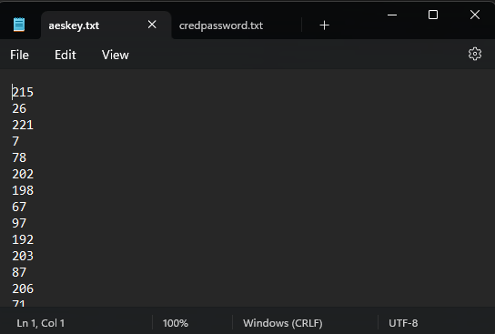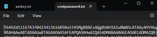You’ll end up with two files. The password.txt file is useless without the AES Key. So, protecting the AES key is important. You’ll want to make sure this is secured as much as possible in production.