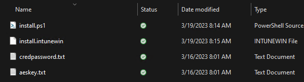 Our script to rename the computer is fairly simple. I have two examples below, and you can get creative and use just about any variables you’d like. The two examples are commonly used naming schemes. First, we have one that will simply rename to a prefix followed by the serial number. I use “HYB-“. It will also check the length of the serial number. If it’s greater than 10 characters, it trims any additional characters down so it only uses the first 10 digits of the serial number. Also, I don’t recommend packaging your secure password file and AES key in the Win32 app (like I have below), but since this was proof of concept in a non-production environment, I did it for simplicity. I also included a transcript in my script while I was testing, but you can remove that portion if you’d like. All these scripts are available on github.