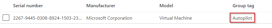 If we look at our autopilot devices, we can see the device was enrolled in autopilot with our specified grouptag from the script: