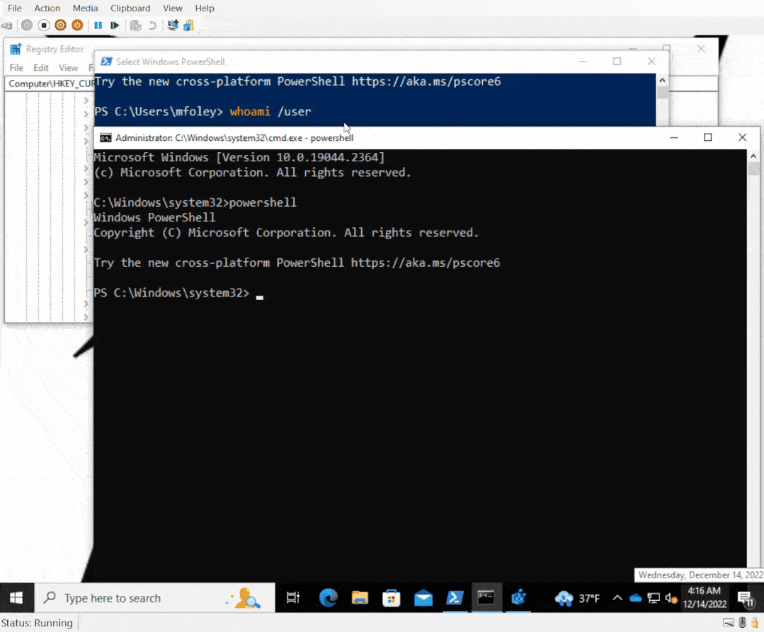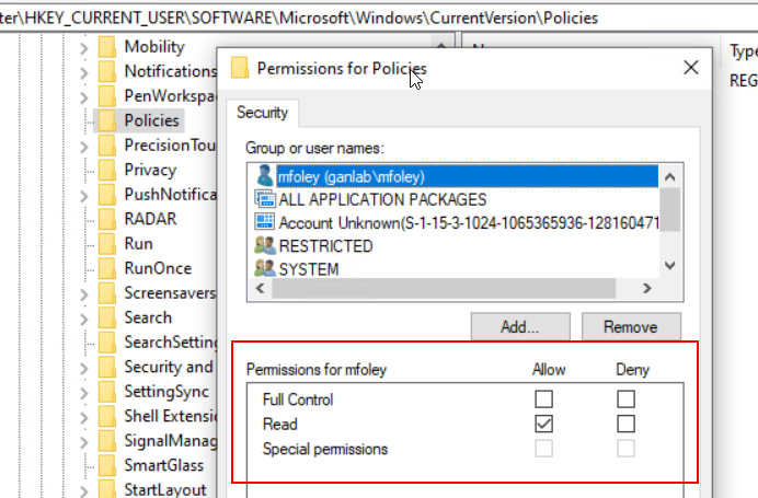 That’s all! This definitely isn’t a common request to edit registry keys in HKCU where the user doesn’t have permission, but it was fun figuring this out. Hope this helps.
