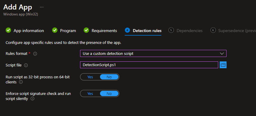 Chose any dependencies if you have any. I have a separate Win32 app that deploys wallpaper and lockscreen images. So, I’ll make that a dependency for this app. Lastly, assign your app to your target groups. Once machines start showing successfully installed, the new wallpaper fit won’t take effect until they sign out and back in (like in the GIF posted above).