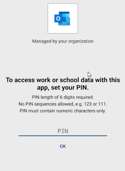 The last step before they user can use the app is to set a PIN. This is specified in the app protection policy. In the app protection policy we made above, biometric authentication can be used in place of the PIN after the PIN is set: