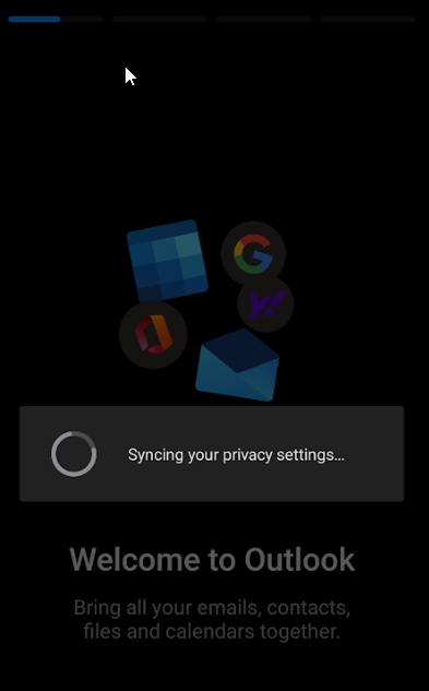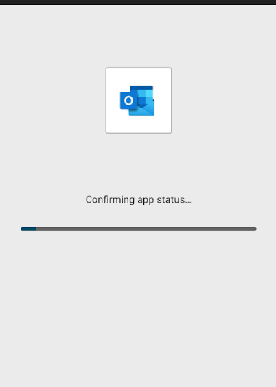 When Company Portal finishes installing, it should redirect you back to the Outlook app. If not, open the Outlook app again. Outlook will show a screen for 5-10 seconds confirming app status: