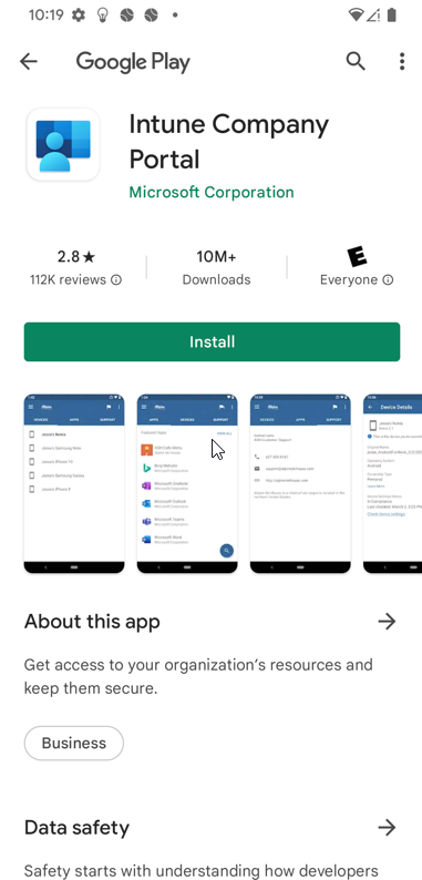 Since I only have an Android device to test this on, that will be shown in this section. However, the iOS process is very similar. The main difference is iOS can use the Microsoft Authenticator app as the broker app, but Android must use Company Portal. The user experience is almost the exact same.