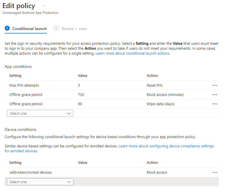 - Users targeted by the policies still need a valid Intune license for the app protection policy and at least an Entra ID P1 license for the conditional access policy.