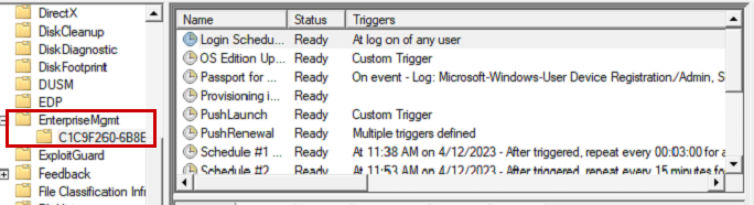 $EnrollmentGUID = Get-ChildItem C:\windows\system32\tasks\Microsoft\Windows\EnterpriseMgmt | Select -ExpandProperty Name
