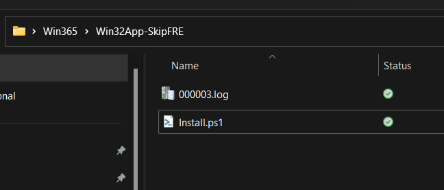 Wrap the install script and the 000003.log file as a .intunewin file: