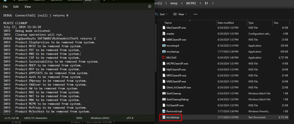 Then pick up on Mr Tbone’s post with his script to package this as a Win32 app and then deploy it to your target devices. There’s no telling if or when this may stop working, but for now, it’s a solution. If you test this manually, you’ll notice that it takes a while to run, but you can view the mccleanup.txt log file that gets generated in the same directory where your mccleanup.exe file is and view the details.