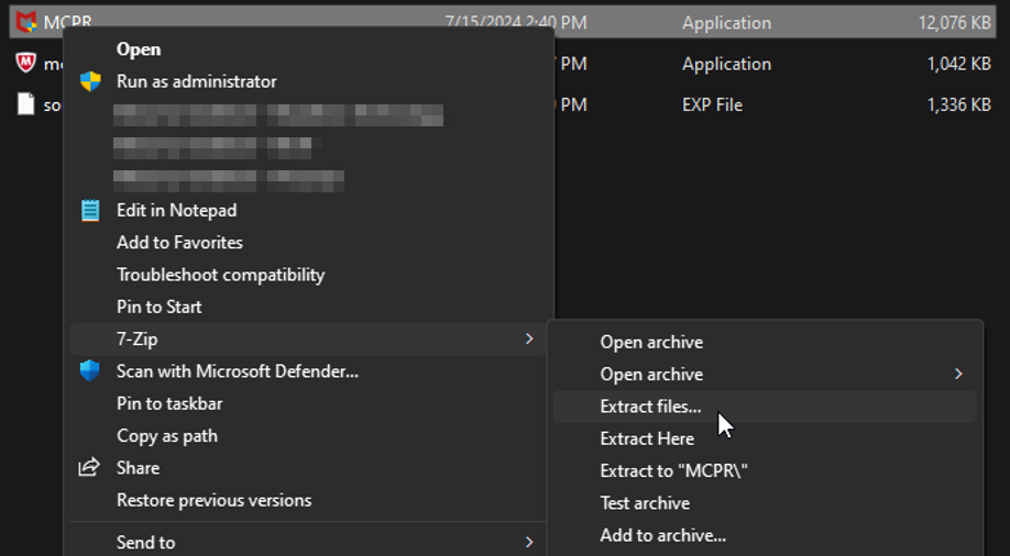So, to summarize, download the MCPR utility. Then Extract with 7zip or a comparable program: