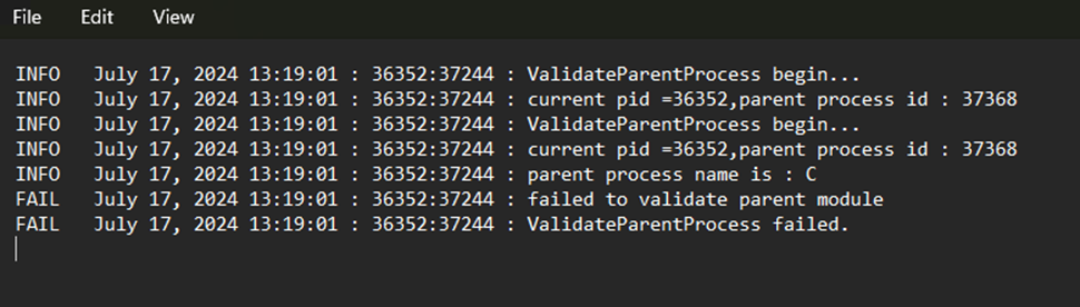 No entries were made in Event viewer and the mccleanup log simply had these entries. One of which is “ValidateParentProcess failed”: